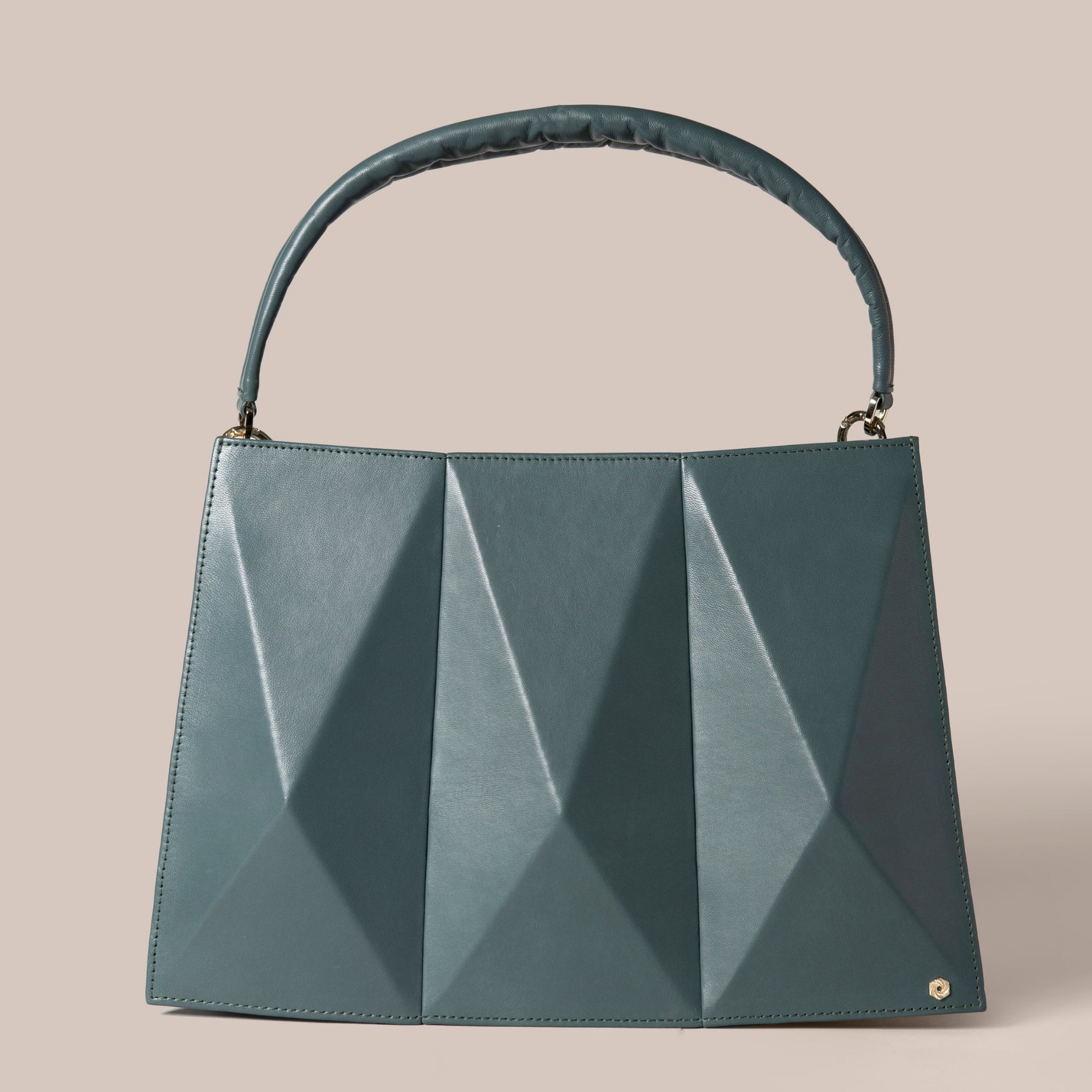 The Sage Green Accordion Bag, made from premium matte goat skin leather, offers a perfect blend of elegance and functionality. Its soothing sage hue and soft leather handle provide luxury and comfort. With multiple compartments, it fits all your essentials, including a 13" laptop. The accordion design expands for extra space while maintaining a sleek profile.
