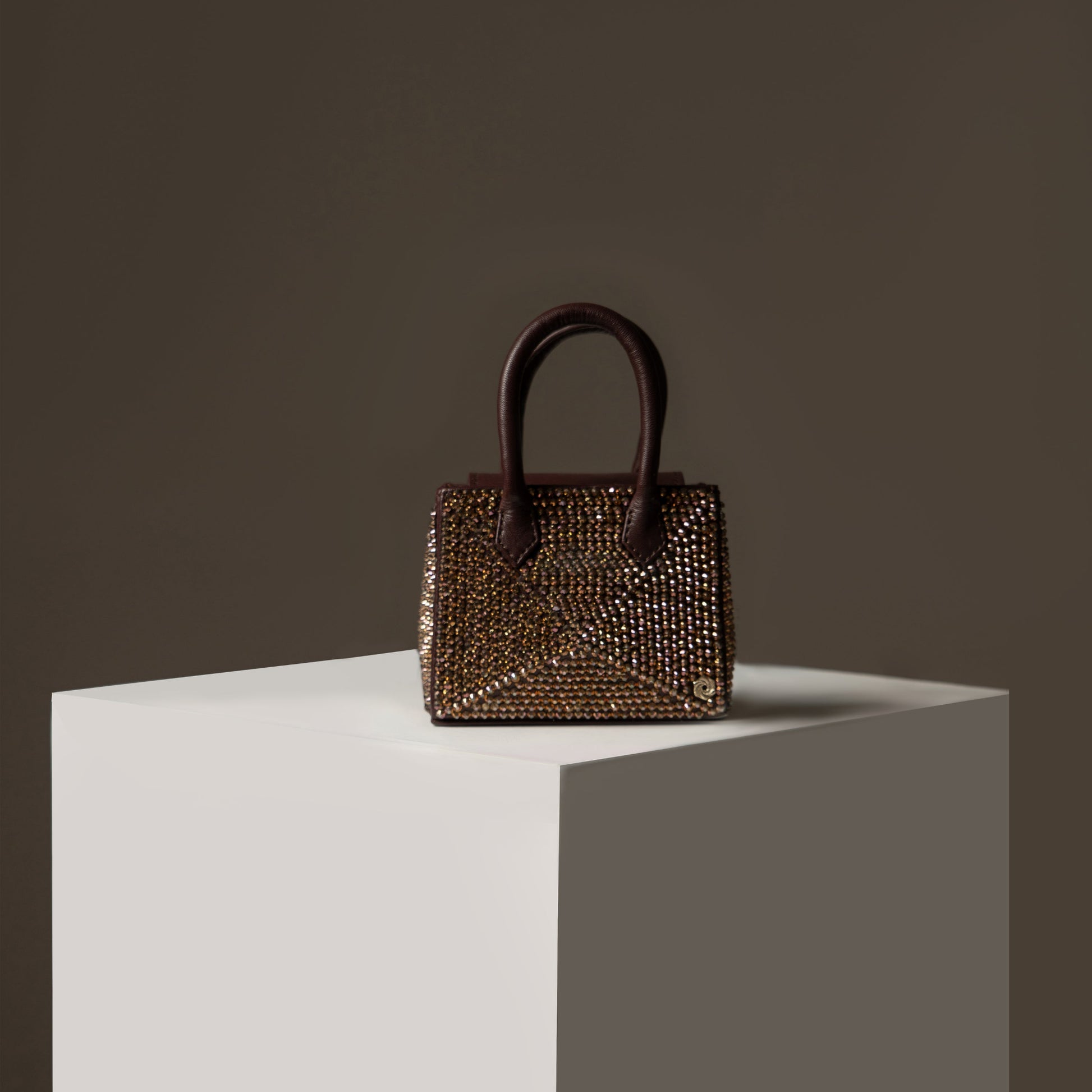 The Crystal Petit Magic Coffee is crafted in a rich oxblood tone and hand-embellished with beautiful copper crystals that catch the light with a metallic reflection from every angle. It’s the perfect size to carry your festive essentials and even has a small mirror inside for quick touch-ups. With its sleek loop handle, you can easily wear it on your wrist through long nights of celebration.
