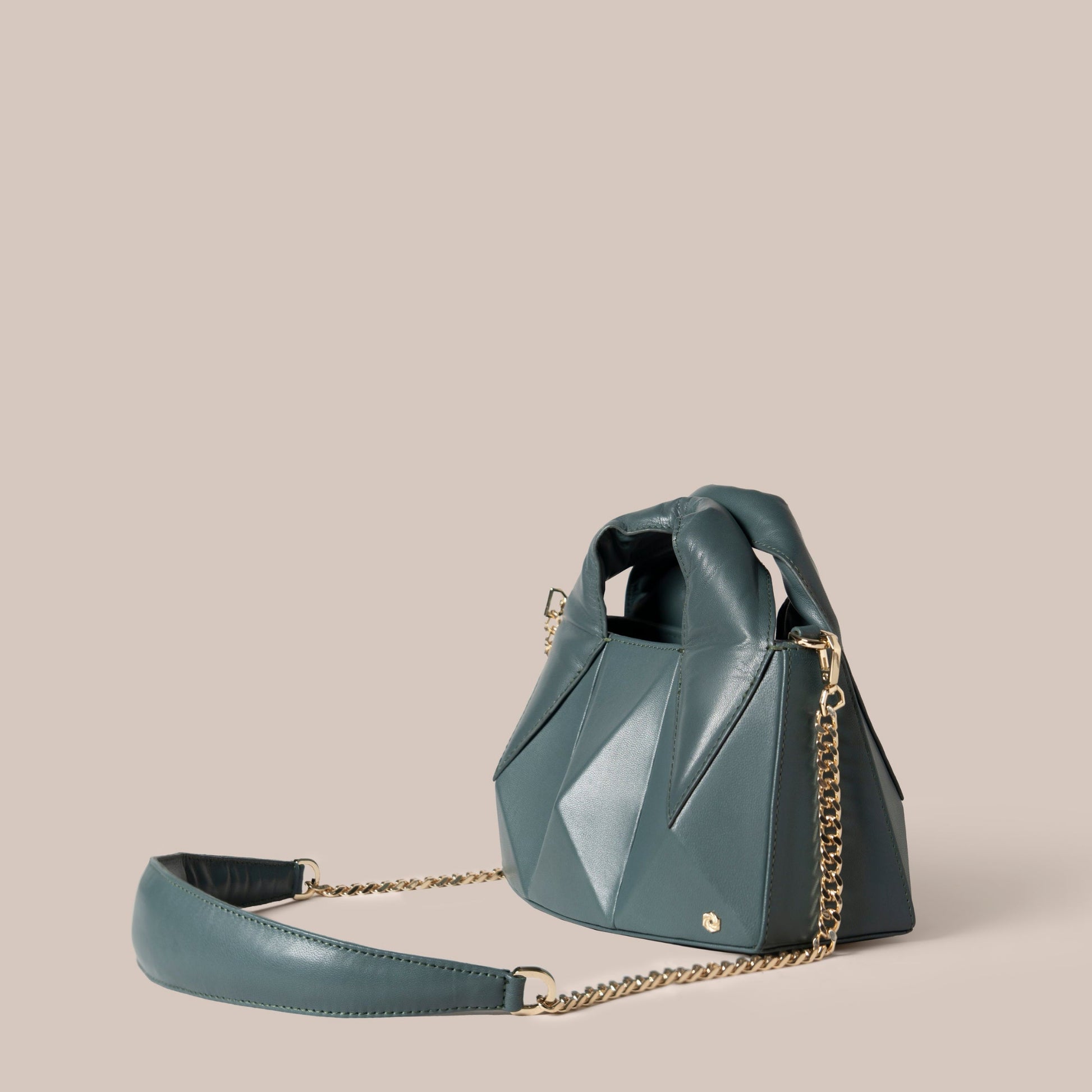 Crafted from matte goat skin leather in serene sage green, this cloud bag features elegant golden metallic hardware and a chic chain detachable long strap. Its spacious design and soft leather cloud handles offer both style and comfort. The detachable strap provides versatile carrying options.