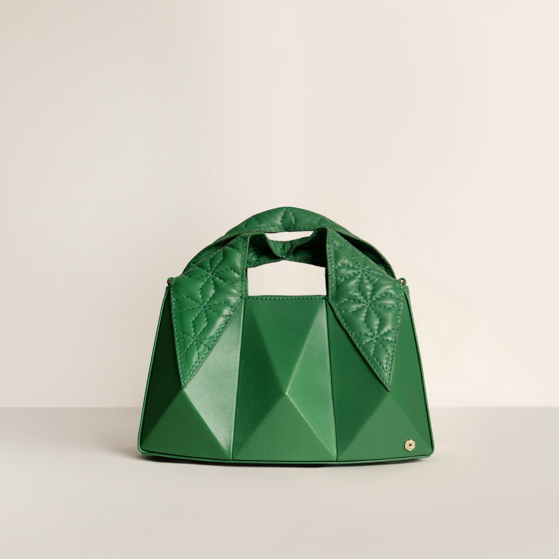 The Ivy Cloud Mini Bag stands out with its vibrant parakeet green and soft, cloud-shaped silhouette. Designed with elegant quilted leather handles, it offers both comfort and structure. The detachable gold chain adds versatility, allowing you to carry it by hand or wear it on the shoulder. Inside, it features a roomy main compartment and a card-sized slip pocket to keep essentials organized.