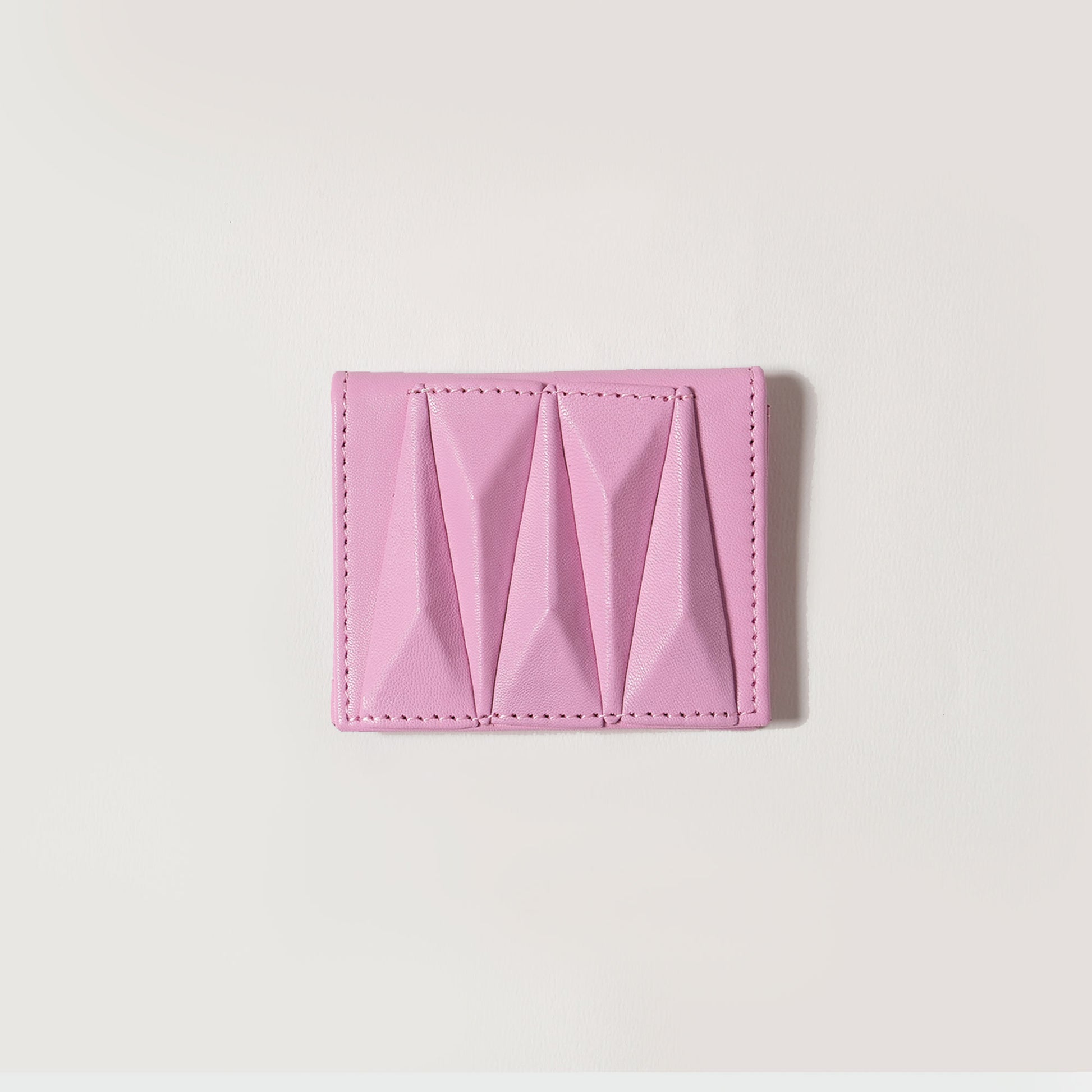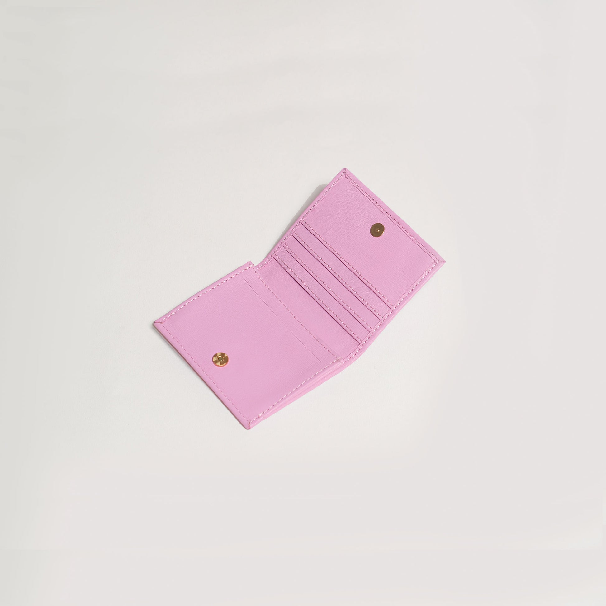 Mini wallet Candy Pink made with finesse quality goat skin leather , it opens to reveal four card slots, and three pockets for cash and receipts.