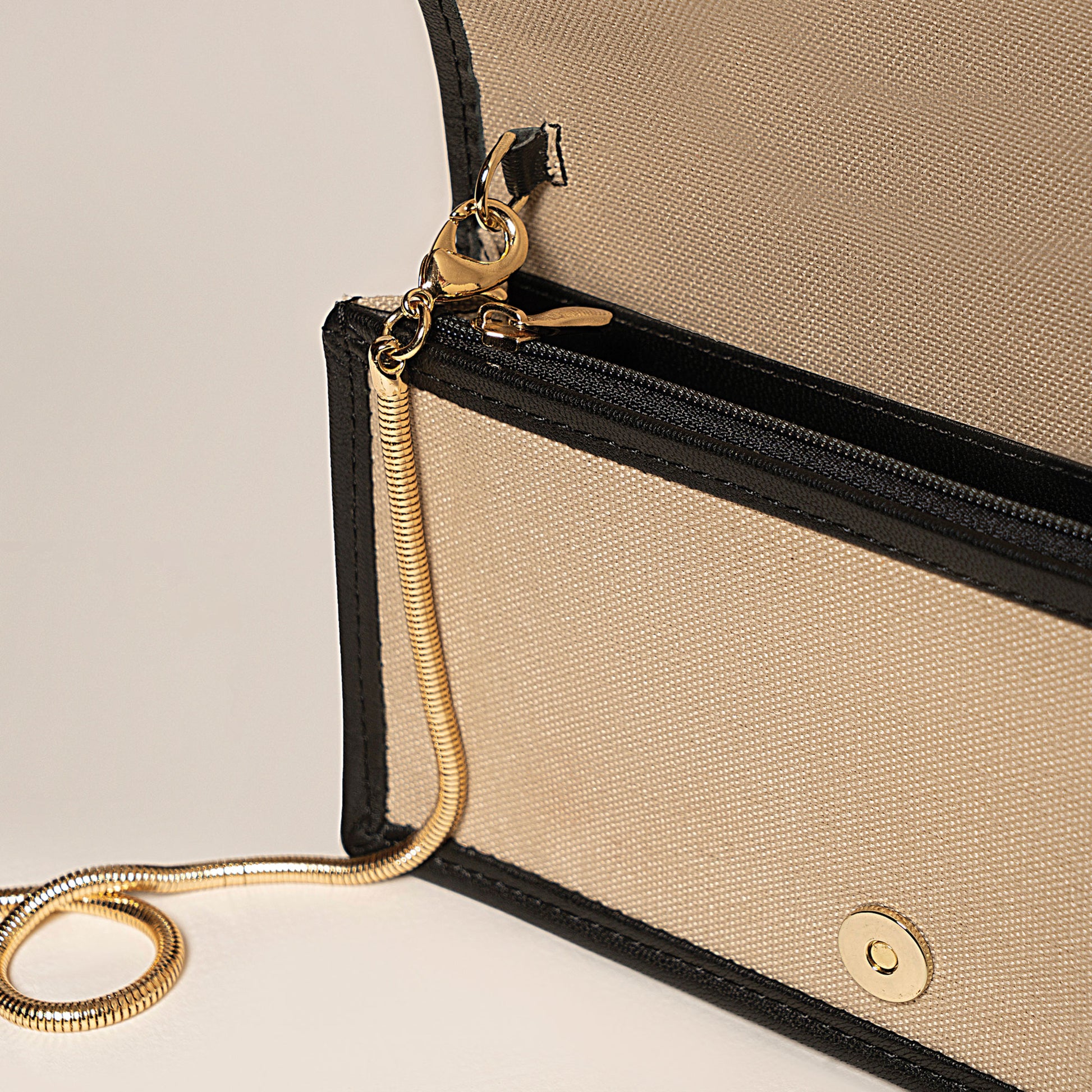 A timeless investment, Wallet-on-Chain Canvas black comes with metallic gold serpentine chain that can be removed to carry it as a wallet. Itis made from lightweight yet durable canvas with the Warp’s signature faceted triangles. The interior features plenty of card slots, plus space for your mobile phone, coins, cash and receipts with a zipped pocket.