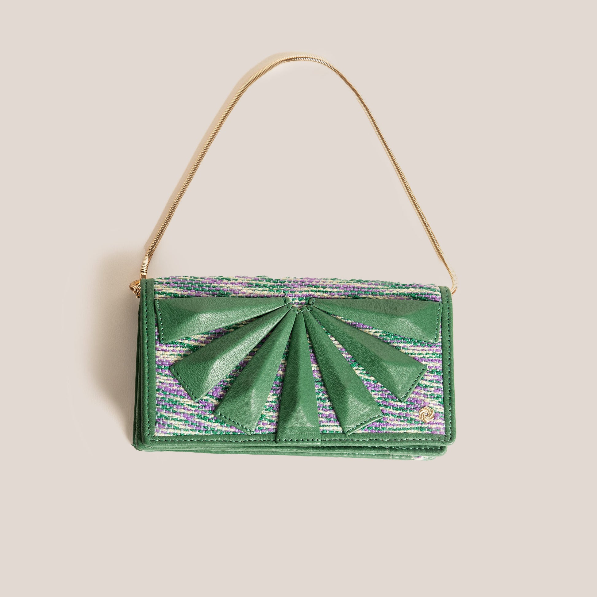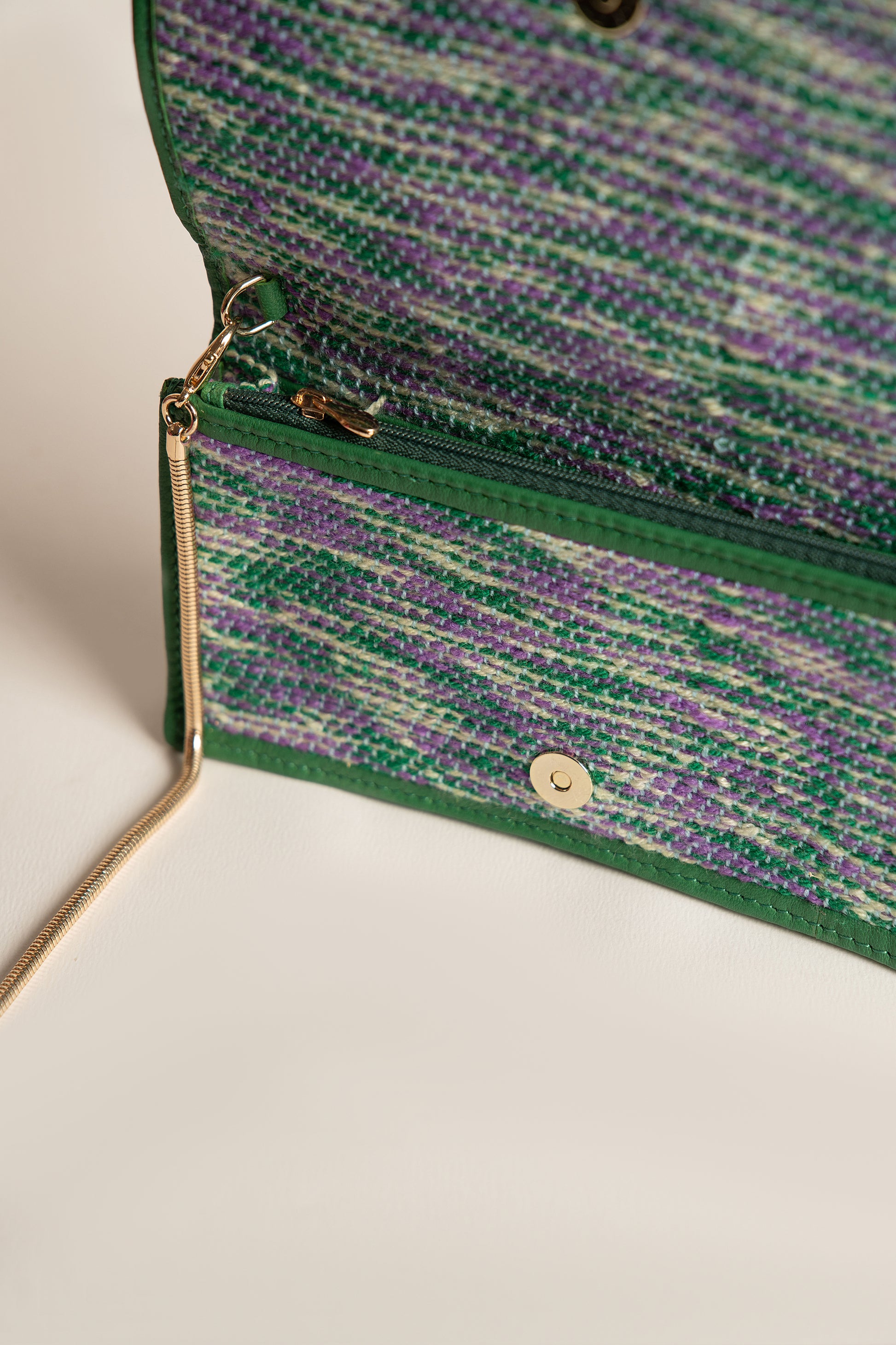 A calm yet playful pick from our High Summer collection, the Matcha Zen Woven Wallet-on-Chain is made from handwoven fabric in fresh tones of lilac, green, and white. Light in feel and gentle in color, it works as both a wallet and a cross body with its detachable gold chain. A zip pocket inside keeps essentials secure, while a slip pocket on the back offers quick access.
