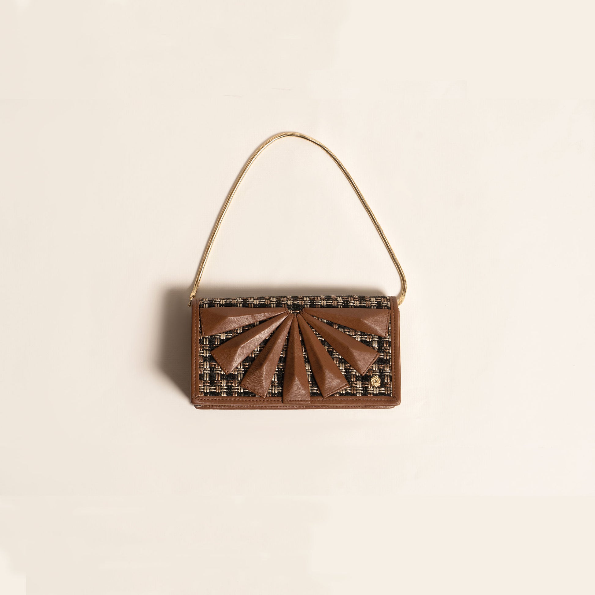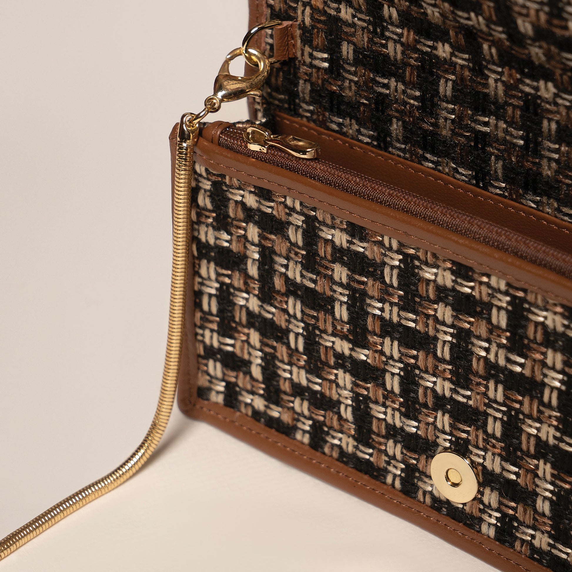 Wallet-on-Chain Woven Terracotta comes detachable chain strap, so it can be worn as a clutch depending on the occasion. Crafted with lightweight woven texture fabric and leather faceted triangles. The interior is fitted with several card slots and zipped compartment that's perfect for storing for your mobile phone, notes, receipts and coins